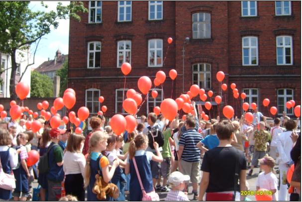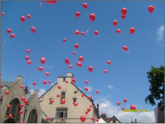 setki czerwonych balonów symbolizuj±cych przemoc, został wypuszczone w